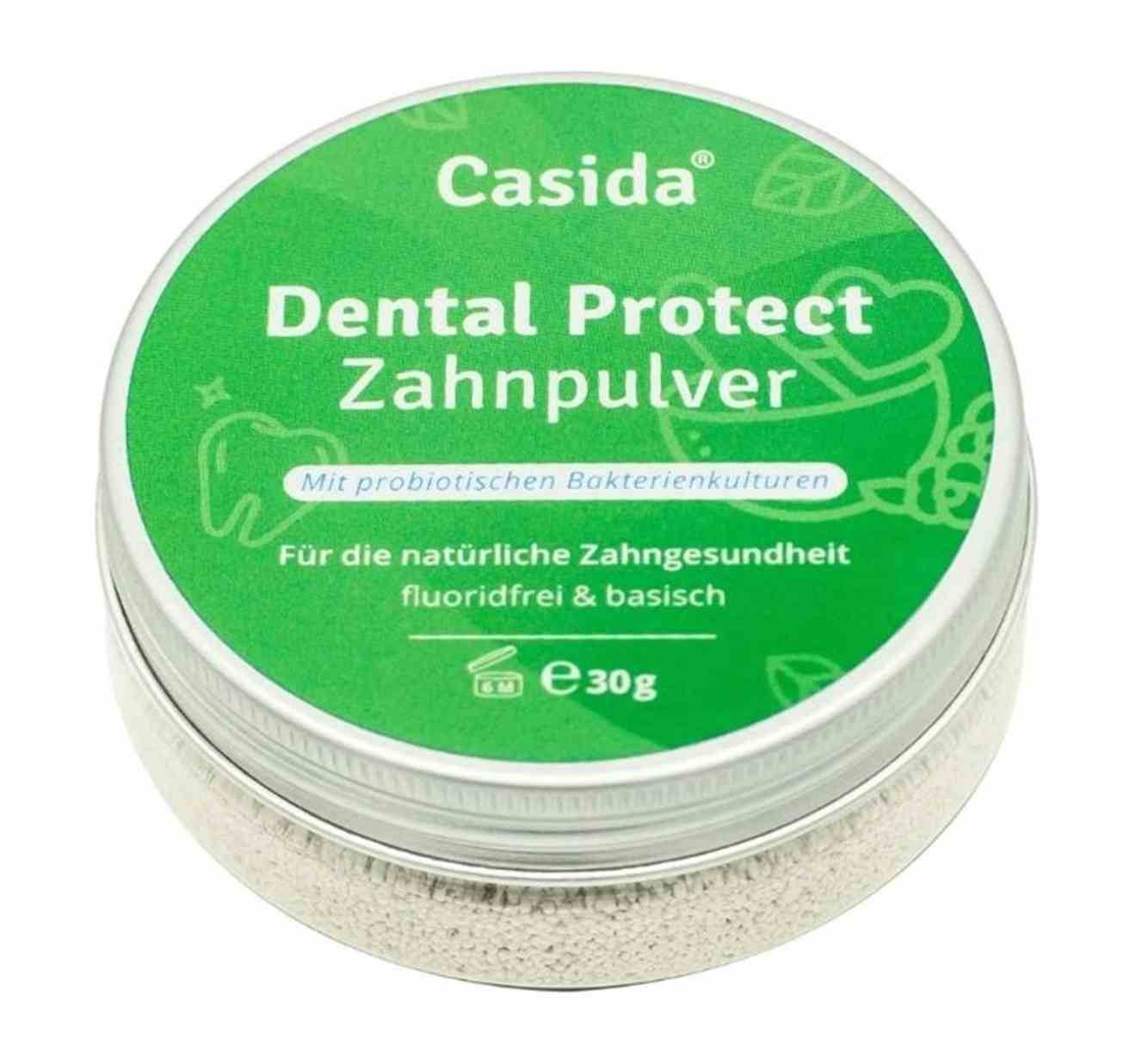 Die gesunde Alternative zu herkömmlicher Zahnpasta. Das Dental Protect Zahnpulver besteht aus den natürlichen Inhaltsstoffen: Rügener Heilkreide, Birkenzucker Xylit, Zeolith, Natron, Pfefferminze und den probiotischen Bakterienstämmen Lactobacillus reuteri und Lactobacillus salivarius.