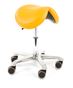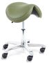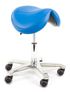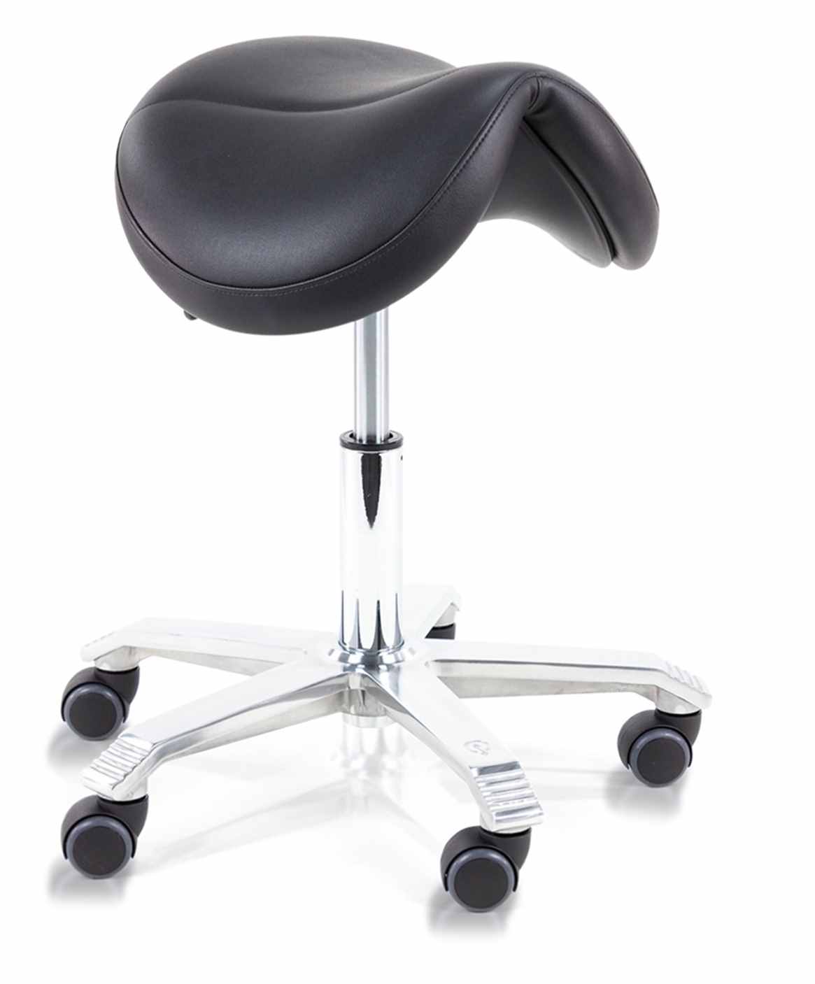 Sattelstuhl Jumper - anatomisch geformter Sattelsitz Indikation: - Der Score Jumper ist ein Sattelstuhl, der durch seine breite, anatomisch geformte Sitzfläche nicht nur die Position des Beckens und der Wirbelsäule korrigiert, sondern auch die Rückenmuskulatur stärkt und Rückenproblemen vorbeugt. - Im Vergleich zu anderen Sattelstühlen besitzt der Score Jumper ein kleineres Fußkreuz mit größeren Rollen, was es dem Benutzer ermöglicht näher an seinen Patienten bzw. Arbeitsplatz zu kommen. Hinweise: - schmale Sitzfläche Gesamtbreite 43 cm - ohne Rückenlehne - mit Höhenverstellung per Handbedienung - kleines Fußkreuz mit großen Rollen für mehr Beweglichkeit - mit festem Sitzwinkel - Anpassung der Sitzfläche bei Änderung der Sitzposition Technische Daten: - weiche Lenkrollen Ø 65 mm - unbelastet/gebremst (für harten Boden) - Höhenverstellung (Gasfeder): ca. 57-76 cm