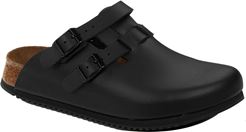 Kay SL Naturleder Modell 8100 - Weite normal Indikation: - Der Kay SL bietet alle Vorteile der Birkenstock Klassiker Tokio und Boston kombiniert in einem Modell Hinweise: - Der obere Ristriemen kann bei Bedarf nach hinten umgeklappt werden und bietet dann als Fersenriemen für zusätzlichen Halt. - Die Superlaufsohle ist rutschhemmend, rollt ideal ab und zudem öl- und fettbeständig. - Ihre Zwischensohle aus EVA verfügt bei der Lederausführung über eine zusätzliche Weichbettung. - Sie dämpft dauerhaft und zuverlässig jeden Schritt, auch bei empfindlichen Füßen. - Vor allen im medizinischen Bereich ist dieses hohe Maß an Flexibilität und Trittsicherheit gefragt. - Alle Superlaufsohlen-Modelle werden nach den Vorgaben der EN ISO 20347:2012 hinsichtlich der Rutschhemmung getestet. - Anatomisch geformtes Kork-Latex-Fußbett mit zusätzlicher Weichbettung Technische Daten: - Obermaterial: Naturleder - Innensohle: Leder-Decksohle - Fußbettmaterial: Kork - Laufsohle: Superlaufsohle