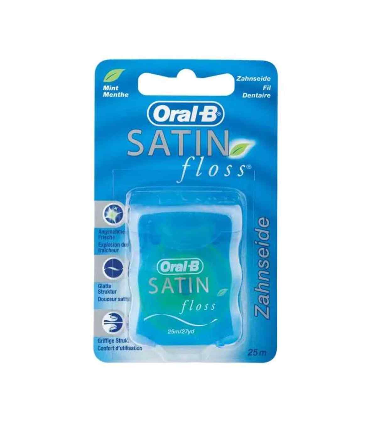 Oral-B Satinfloss Zahnseide - im Spender Indikation: - entfernt sicher und mühelos Speisereste und Zahnbeläge aus den Zahnzwischenräumen und unter dem Zahnfleischrand und sorgt für ein sauberes und frisches Mundgefühl Hinweise: - Das Zahnseidenband gleitet sanft zwischen den Zähnen und auch unter der Zahnfleischlinie und sorgt damit für eine schonende und gleichermaßen effektive Interdentalreinigung. - Hat eine innovative und revolutionäre "Islands in the Sea" Struktur, bestehend aus einzelnen, im Extrusionsverfahren hergestellten Nylonfäden ("Islands"), die von einer Pebaxhülle ("Sea") umgeben sind. Technische Daten: - Material: Seidenband - Geschmack: Minze