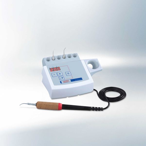 Waxlectric I 220-240 V - Elektrisches Wachsmesser Indikation: - Das Waxlectric I ist der professionelle Einstieg im Bereich der elektrischen Wachsmesser. Vorteile: - Kontrollierte Arbeitsprozesse durch gradgenaue Temperatureinstellung. - Direkter Abruf der bevorzugten Arbeitstemperaturen durch Programmierfunktion. - Schnelle Aufheizrate und geringe Temperaturaufnahme des Griffs durch Heizung in der Modellierspitze. Details: - Ergonomischer Zugriff auf das Handstück und Wechselspitzen durch integrierte Halterungen. - Direkte Einstellung der Maximal- oder Minimaltemperatur. - Tageslichttaugliche 3-stellige LED-Anzeige. - Farbleitsystem zur kontrollierten Steuerung des Handstücks. Technische Daten: - Zulässige Netzspannung: 100 - 240 V - Zulässige Netzfrequenz: 50 - 60 Hz - Temperaturbereich: 50 - 200 °C - Gewicht mit/ohne Netzteil: ca. 430/240 g - Maße (B x H x T): 120 x 60 x 98 mm - Versorgungsspannung: 12 V DC - Ausgangsleistung: 5 W - Netzteil Eingangsspannung: 100 - 240 V AC - Netzteil Ausgangsspannung: 12 V DC (1 A) - Kabellänge Handstück: 85 cm - Anzahl Handstücke: 1 - Programmierbarkeit Temperatur: 1 - Digitale Temperaturanzeige: 1 Lieferumfang: - Waxlectric 1 220-240V: 1 Steuergerät, integrierter Halter für 1 Heizgriff und Halter für 6 Spitzen, 1 Handstück, (1 Modelliereinsatz) Ref. 21550102 , 1 Netzgerät