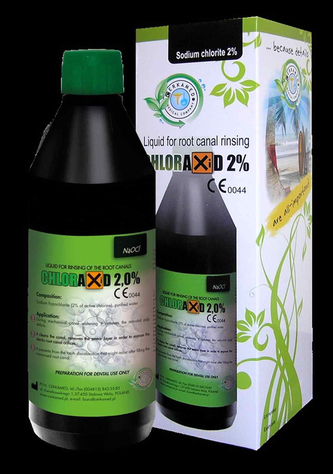 Wirkt lytisch auf totes und lebendes Gewebe. Löst den organischen Teil der Schmierschicht. Hat reinigende Eigenschaften und bleicht das harte Zahngewebe aus. Bei der mechanischen Aufbereitung des Wurzelkanals entfernt es die Überreste der toten Pulpa. Wirkstoff: Natriumhypochlorit. Solange der Vorrat reicht!!!