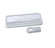Namensschild - Modu-Line 30 Hinweise: - Kunststoffgehäuse mit integriertem Magnet - Zum Selbstbeschriften - Namenskarte geschützt hinter einem Sichtfenster aus Antireflex-Kunststoff - nicht für Träger von Herzschrittmachern geeignet Technische Daten: - Maße: außen 81 x 33mm, Namenskarte: 75 x 27mm