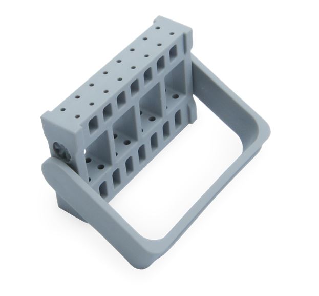 SteWaFix Endo - Feilenhalter Indikation: - Flexibler Bohrerständer für bis zu 16 rotierende Instrumente Hinweise: - Fur Praxis und Labor - Geeignet für Thermodesinfektor und Steri bis 134 °C - arretierbarer Sicherheitsbügel, in 3 Höhen verstellbar - auch für Mundspiegel geeignet - 2 verschiedene Lochgrößen, geeignet für FG und HP - auch für Endo-Nadeln geeignet - in 3 Höhen verstellbar - Alle Bohrerständer werden unbestückt geliefert! Technische Daten: - Maße: 70 x 15 x 60 mm